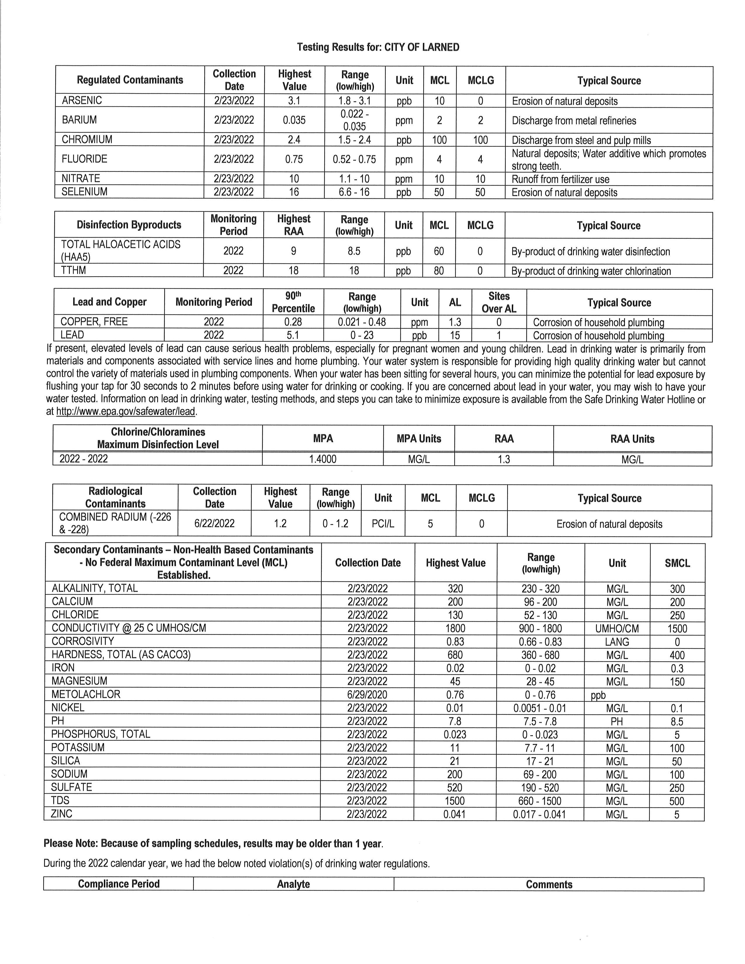 Consumer Confidence Report City of Larned